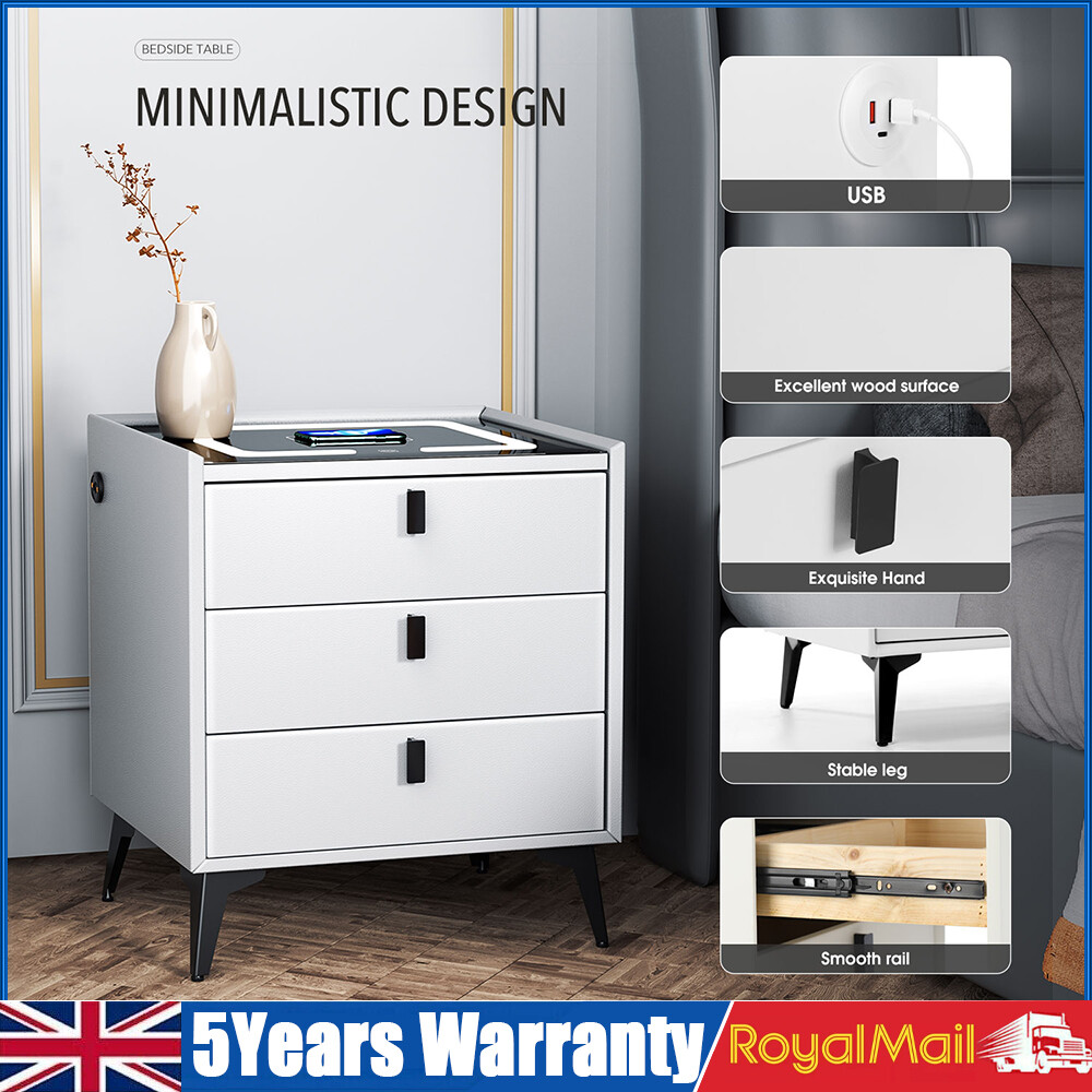 3 Drawers Bedside Table Wireless Charging Nightstand LED Top Bedside Eklocwntoim