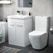 This unit features one tap hole basin and a double door vanity unit which is perfect for cloakrooms and bathrooms. It also offers ample storage and washing space while minimising the space taken up in your bathroom. Please Note: The vanity cabinet comes flat pack.