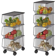 Metal Wire Basket With Wheels Kitchen Bedroom Bathroom 3 Tier Brand New