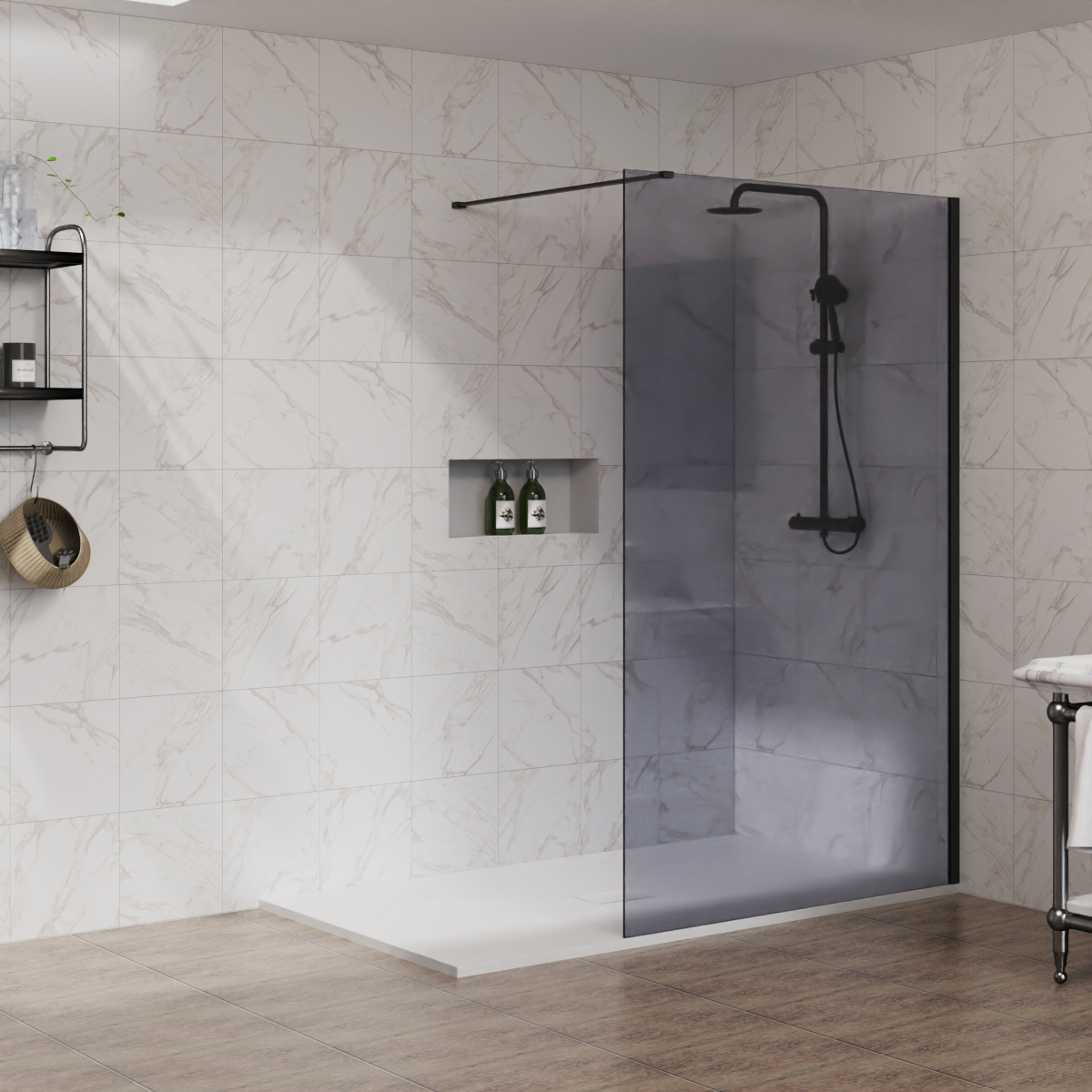 Walk In Shower Enclosure Grey Glass Wet Room Screen Flipper Panel Cubicle Tray