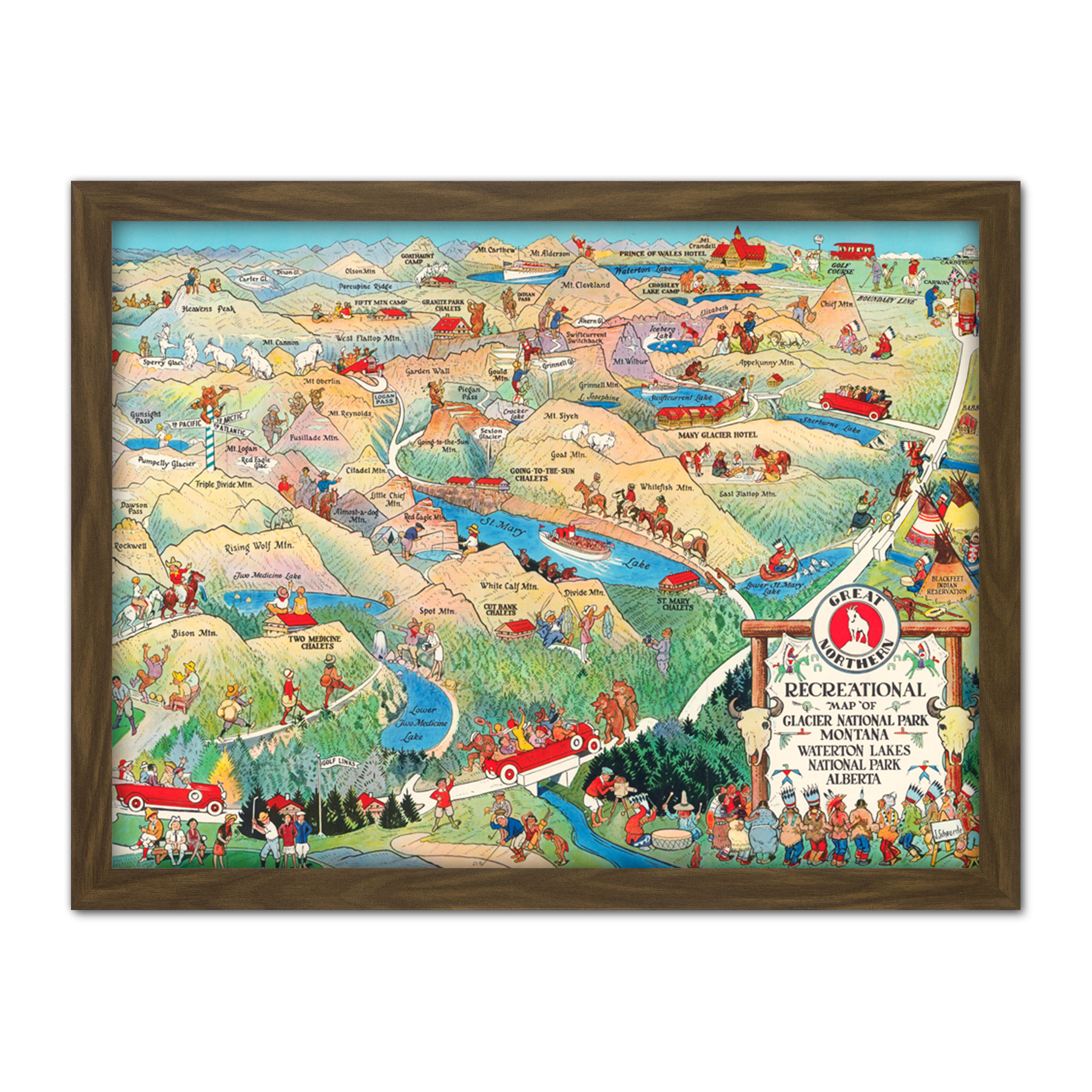 Map Scheuerle 1925 Glacier National Park Montana USA Framed Wall Art Print 18X24
