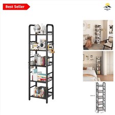 Ladder Shelf 5-Tier Narrow Shelf Bookshelf Rustic Brown and Black