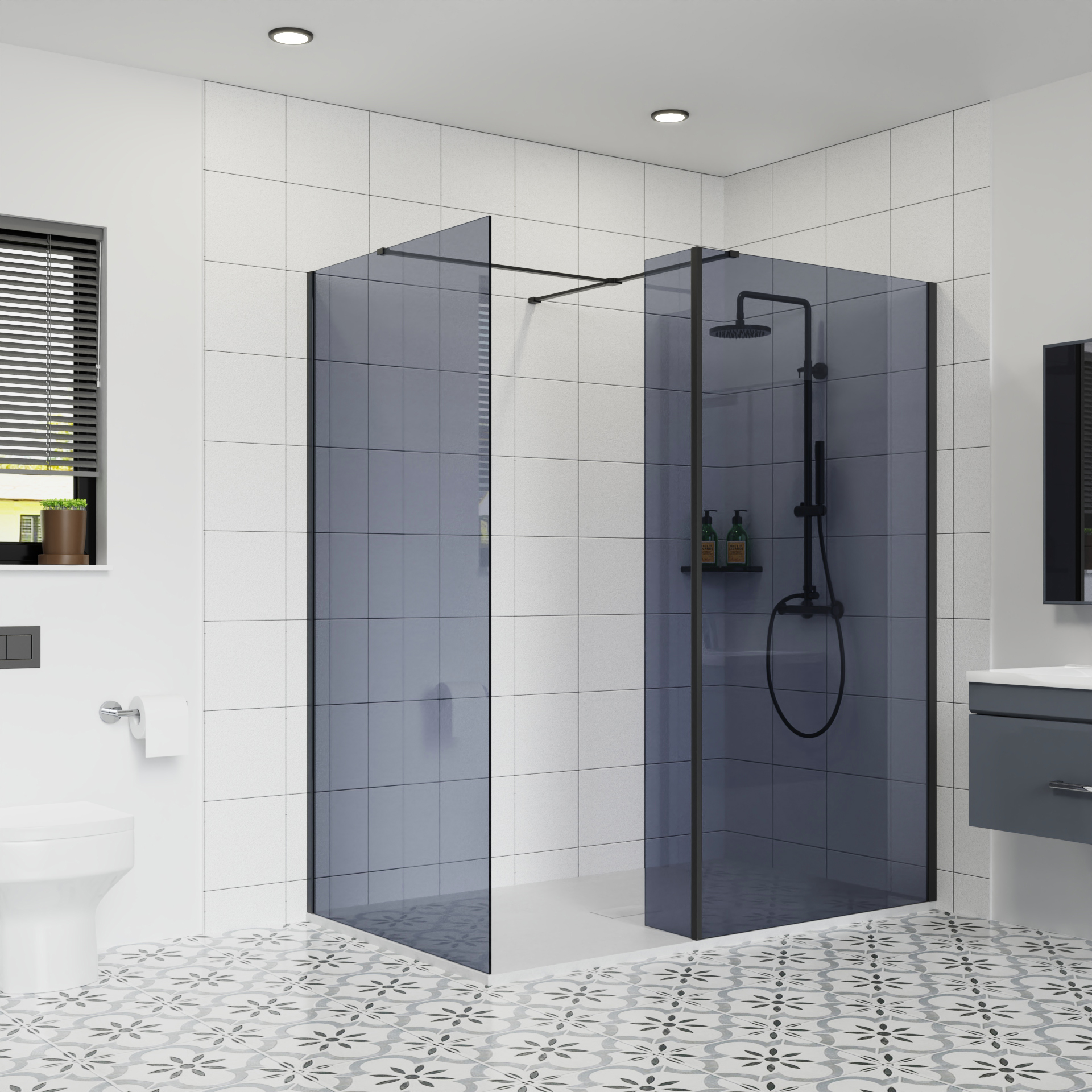 8mm Walk In Shower Enclosure Wet Room Cubicle Grey Glass Screen Panel Flipper