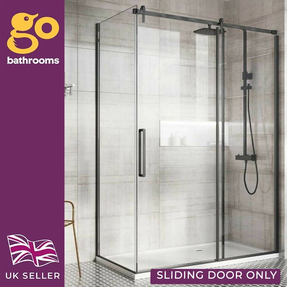 Black Frameless Shower Enclosure Shower Side Panel Bathroom Sliding Door Render