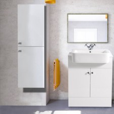 Grey Gloss Tall Storage Unit Bathroom Wall Hung 2 Door Universal Storage Cabinet