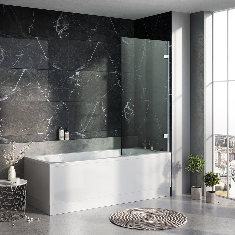 Designed to sit along the edge of a bath, this screen deflects water from a shower back into the bath and is far more effective than alternatives such as a shower curtain - as well as being far more attractive.