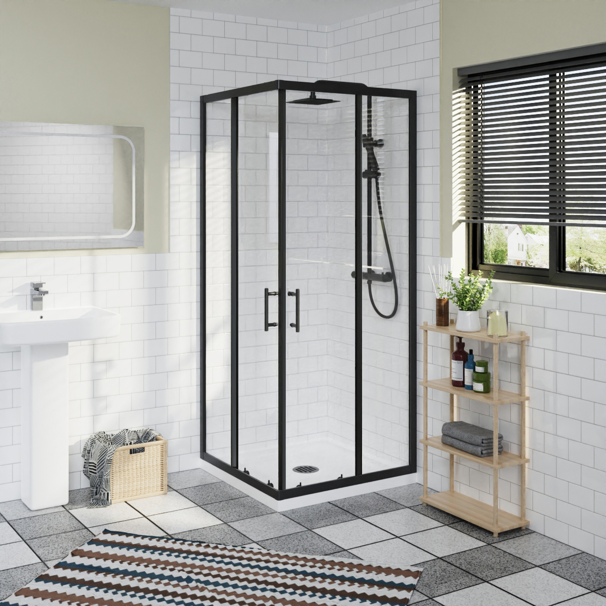Quadrant shower enclosure with double sliding doors. Corner Entry shower enclosure with double sliding doors. Corner Entry Shower Enclosure. Galvanize top double wheels & bottom jump double wheels, smooth sliding and long lasting.
