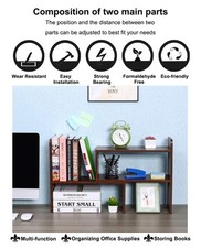 3-Tier Wooden Bookshelf Office Desk Storage Rack Bookshelf Desktop Storage Rack