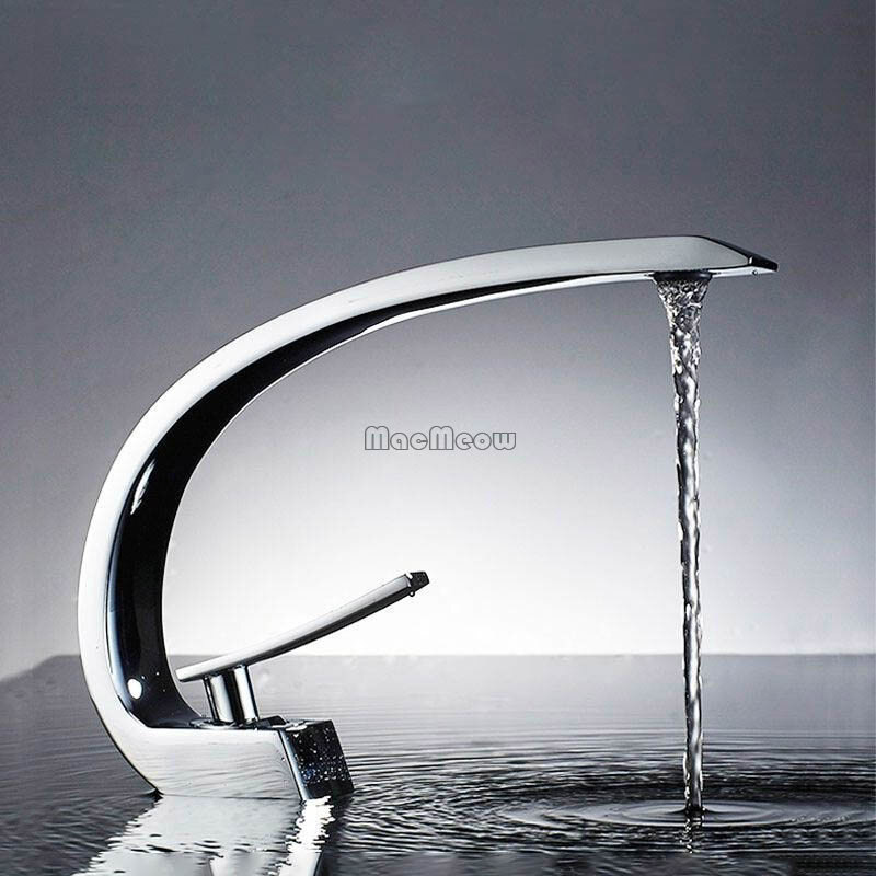 Curve Slim Gold Bathroom Monobloc Sink Tap Single Lever Hole Basin Mixer Faucet