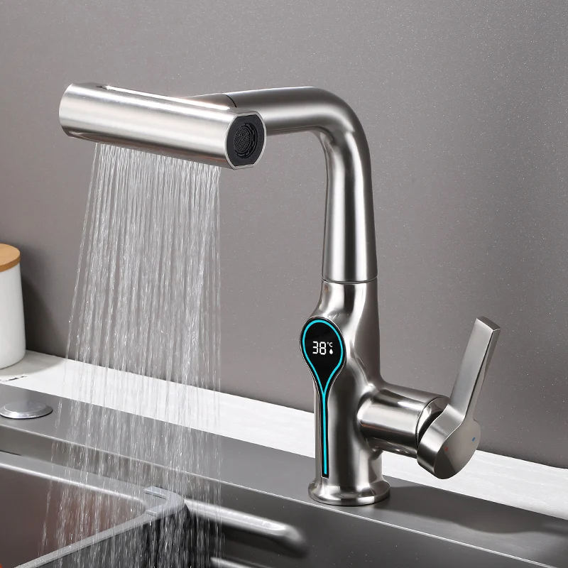 Digital Display Waterfall Basin Faucet Hot Cold Mixer Tap Bathroom Sink No Batte