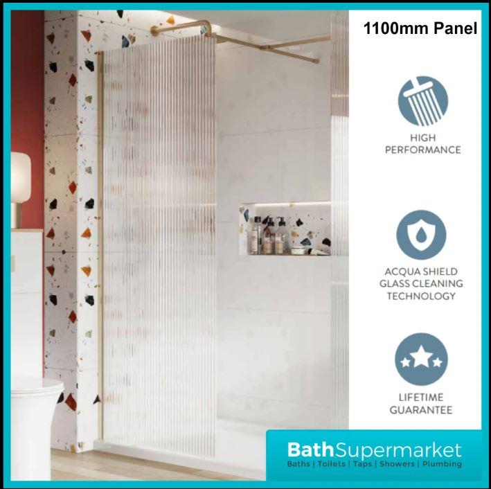 2000mm Height. Fluted Glass Design. Manufactured From High Grade Aluminium. Shower Screen Wetroom Panel. BATHROOM FURNITURE. Can Be Installed Onto A Shower Tray Or A Tiled Wetroom Floor. Two Wetroom Panels Combined Create A Walk In Shower Design.
