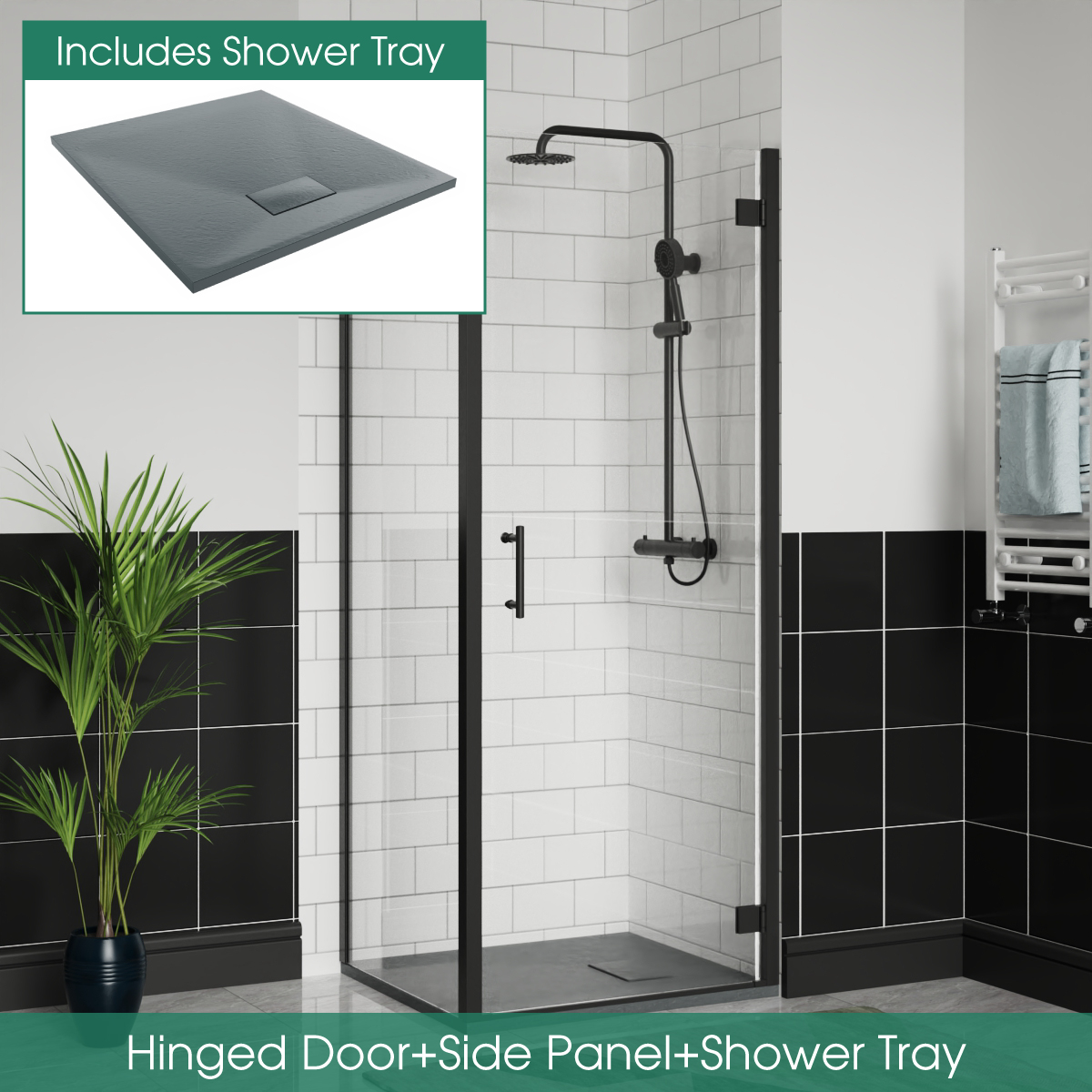 Hinged Door Shower Enclosure Walk in Cubicle 6mm Framed Glass Screen and Tray