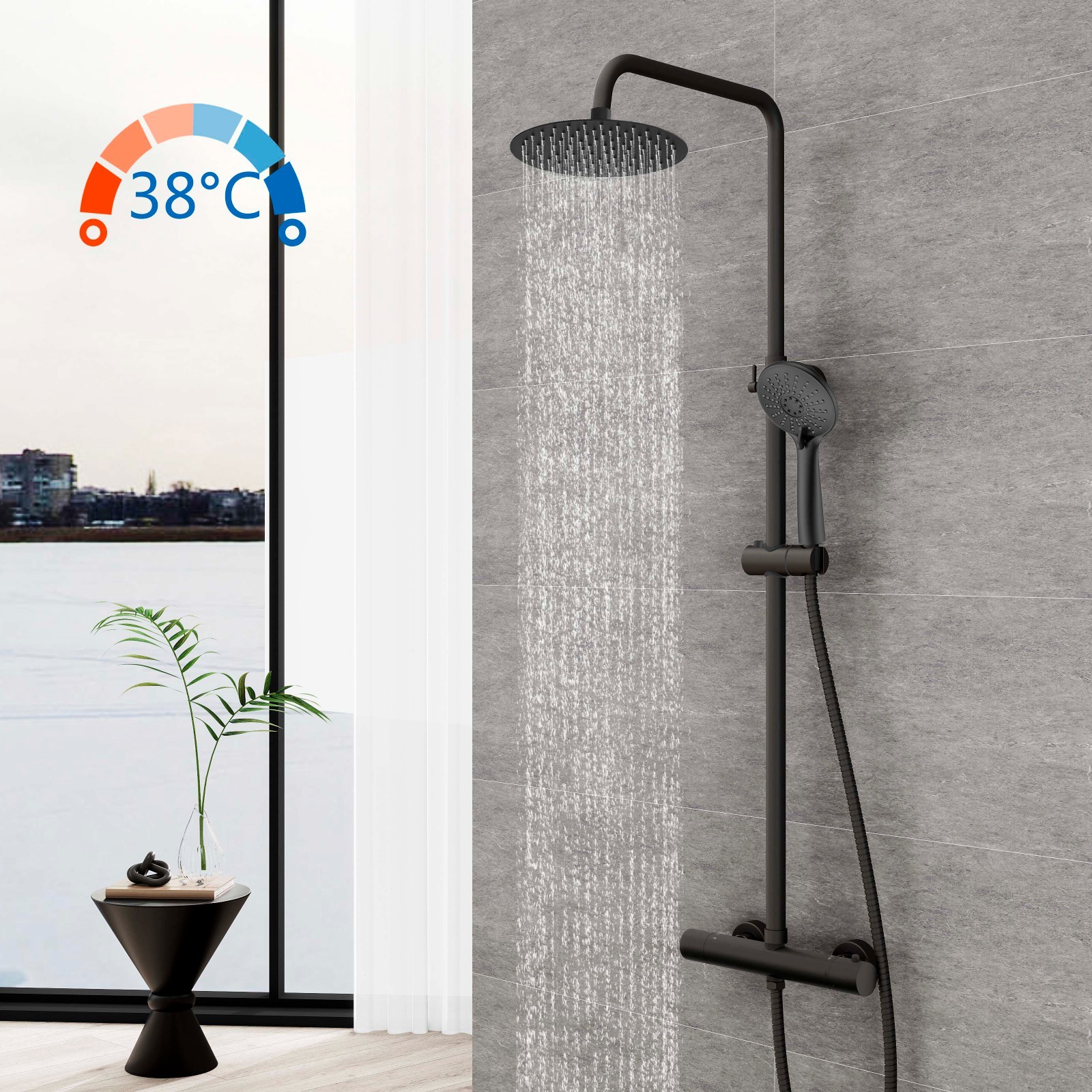 Bathroom Mixer Shower Thermostatic Dual Head Square Rainfall Handset Matte Black