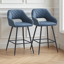 2pcs Blue Velvet Bar Stools Diamond Seat Metal Legs Kitchen Pub Chairs Stools