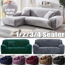 VELVET Elastic STRETCH SOFA COVERS Slipcover Protector Settee 1/2/3/4 Seater UK