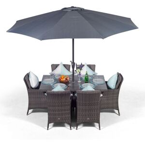 SAVANNAH 6 SEATER RECTANGULAR RATTAN GARDEN DINING SET ENJOY SUMMER IN STYLE - Enjoy warm summer days and evenings in style with the Savannah 6 seater rectangle rattan dining set by Giardino. Built to last years, the Giardino brand of synthetic outdoor wicker furniture is UV and weather resistant, lightweight; incredibly durable and looks amazing. This 6 seater rattan dining table and chairs set is available in a stunning mixed brown weave or the ultra stylish mixed grey weave. EVERYTHING YOU NEED FOR ENTERTAINING - The versatile Savannah rattan dining set provides everything you need to enjoy alfresco family meals during long warm summer days, whilst making your outdoor living space ultra stylish! The Savannah outdoor rattan dining set consists of a 150x90cm rectangle rattan dining table, 6 padded rattan dining chairs, 3m parasol and 12kg parasol base. QUALITY CRAFTSMANSHIP - The Savannah rattan garden furniture set is made using aluminium frames and polyethylene all weather rattan,