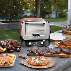 From the UK’s No.1 BBQ brand†.Reimagine what you can cook outdoors with the Ninja Woodfire Outdoor Oven Pizza Oven & Smoker. Powered by electricity unlock 8-in-1 versatility with a wide temperature range of 40°C-370°C offering a world of premium flavours textures and results at the touch of a button.Plus Woodfire Technology lets you add authentic smoky flavour to anything you make at any temperature with just 1 scoop of our concentrated-flavour pellets.8-in-1