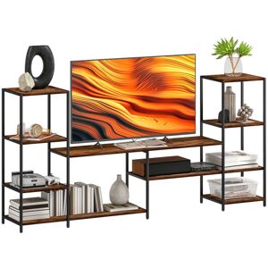 "Allow industrial styling take centre stage in your living room, supporting your most important possessions – your television. This TV unit is crafted into a three-level design, featuring a spacious bottom area and middle shelf, both of which are perfect for keeping consoles, cases, and remotes on, alongside the top for your television. With a melamine surface all over for easy cleaning, each worktop is finished in a dark chestnut brown tone which complements the black frame beautifully. Specifications: ● Colour: Rustic Brown, Black - Material: Particle Board, Steel - Overall Dimension: 120L x 40W x 45Hcm - Middle Shelf:54L x 35.2Wcm - Bottom Shelf:115.3L x 35.2Wcm - Shelf to Shelf Height:18cm - Weight Capacity:30kg (Overall),15kg(Table Top) - Custom Label: 833-719 Features: ● Dark industrial design which is a beautiful addition to any style home - Black metal frame ensures strength and reliability for a mainstay in your home - Three shelves provide plenty of storage and display space
