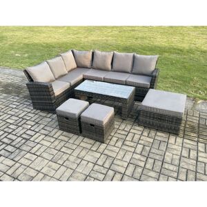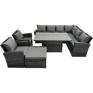 This patio corner sofa set can be used both indoors and Outdoor,with high quality PE rattan and durable galvanized steel construction for sturdiness and long lasting. Outdoor garden furniture can also be placed on the patio or balcony,The design of this rattan furniture is a perfect blend of country chic and modern minimalism, adding an elegant touch to your house. Set dimensions: •1 x 3 Seater sofa with two arm : 170L x 69W x 79H cm •1 x 3 Seater sofa with single arm: 160L x 69W x 79H cm •1 x rising dining table: 140L x 80W x 68/48H cm (height up 68,down 48) •2 x Big Footstool :65L x 65W x 34H cm •1 x Chair: 74W x 69D x 79H cm Light Grey Mixed rattan with dark grey fabric .Color may vary due to light or monitor .we are unable to return the item due to this problem .Please consult before purchase if you have requirment on color saturation. Table Can Be Used Both For Coffee Or Dining Table,Great Price Compared With Other Online Or Offline Store For Rising Table Set Items Comes Flat