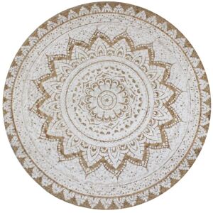 Give your interior a natural touch with our braided jute area rug! The round carpet is handwoven by skilled artisans with exceptional craftsmanship and with its attractive texture and beautiful Mandala print, it will fit perfectly into your home decor. Jute is a very durable and naturally strong material and low maintenance. Please note that each rug is unique; variations in colour and design may occur due to the handmade nature of the product. The delivery is random, ensuring the exclusivity and individuality of your product. Note: The rug is folded in a carton for easy transportation. Please allow the product some time to become perfectly straight and flat. Colour: Natural with white print Material: Braided jute Diameter: 150 cm In a natural jute tone Strong, resilient and durable With a beautiful Mandala print Reversible design Appealing texture Handmade Fabric: Jute: 100% SKU: 245341 EU responsible party Haba Trading B.V. Mary Kingsleystraat 1 5928SK Venlo The Netherlands