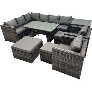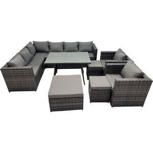 This deluxe PE rattan sofa set is a great addition to patio or garden, made of high quality PE rattan and durable galvanized steel construction for sturdiness and long lasting. Durability ,and can be put outdoor all year round. Pls kindly leave your mobile number at checkout for not delaying your shipment . Set Dimensions: 1x Sofa with double armrest size: 176W x 65D x 66H cm; 1x Sofa with single armrest size:166W x 65D x 66H cm; 2x Chair:74W x 65D x 66H cm; 1x Big Footstool :65L x 65W x 34H cm; 2x Small fully assembled footstools 40L x 40W x 34H cm; 1x Dining Table Size: 110L x 70W x 70H cm; Sofa Weight Capacity: 250kg; Table Weight Capacity: 50kg Dark grey mixed PE Rattan .Color may some difference due to light or monitor .we are unable to return the item due to color problem . Items Comes Flat Packed And Easy to Assemble, Sturdy Galvanized Steel Tube Metal Frames With Powder Coating To Prevent The Rust. Flat PE Rattan Completely Made By Hand, 5mm Thick Transparent Tempered Glass With Sucker On Surface To Prevent Sliding8 cm Thick Seat Cushion With Soft Pillow Back Cushion Gives You More Comfort Low Maintenance ,Removable Cushion Cover And Easy Move To Different Place. Pls Keep the Cushion Indoor Or put on With Rain Cover When Not In Use . put on The Furniture With Rain Cover If Not in Use For Long Time . Fimous 11-seater Outdoor PE Rattan Sofa Set with with 2 Chair 3 Stools in Dark Grey