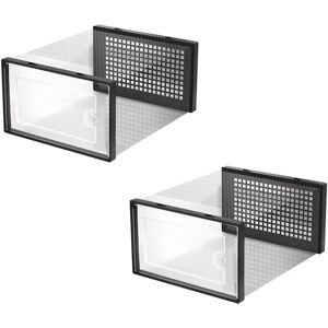 Say goodbye to the mess: stackable shoe storage boxes are dust-free and maximize storage space. Adopt the design of snap fastener to build a shoe tower and raise your shoe rack to a . Look through the transparent front door and find the right shoes. Home layout: A few transparent shoe boxes can help you tidy up your closet, corridor and bedroom. These stackable storage boxes are perfect for organizing everyday small items, which can be found without opening them, and can also be used for storing scarves, books, toys and games. Strong and breathable: is made of strong and high-quality plastic. The large rear ventilation hole ensures air circulation and odor prevention, and the breathable shoe box keeps fresh. Easy for daily care-clean with mild soap and water. Throw your shoes in: each box is 13.1inches long x 9inches wide x 5.5inches high (about 33.5cm long x 23cm wide x 14cm high), which is suitable for all kinds of shoes. Welcome to buy these shoe boxes. Colour:Black Material:PP