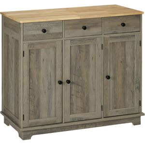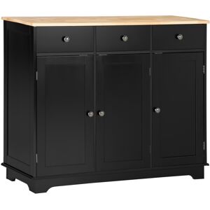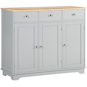 Quickly add that needed storage and get yourself clutter-free with this HOMCOM storage sideboard. The neutral tone makes this storage unit a low-key statement to your house. At the same time, the cupboard provides ample storage space for your daily accessories and utensils. Customize your home space with the interior adjustable shelf that move to fit your needs.Features:Large storage space with 3 storage cabinets and 3 drawers for holding daily suppliesEquipped with adjustable shelves to accommodate items of various heightsCan be used as a display cabinet, sideboard, or hallway storage unitFits dining room, kitchen, living room, or other limited spaces needing a bit more storageMade of solid rubberwood tabletopFitted with MDF, smooth surface is easy to wipe clean when there are spills or messesAnti-tipping design helps prevent it from tipping overAssembly required