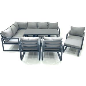 This deluxe aluminum adjustable rising sofa dining set is a great addition to your patio or garden, made of high quality Alloy aluminum and powder coating for sturdiness and structural durability. Set Dimensions: 1 x Left Sofa with single armrest: 125W x 70D x 78H cm 1 x Right Sofa with single armrest: 125W x 70D x 78H cm 1 x Corner Sofa70L x 70W x 78H cm 1 x Armless Sofa Size: 60L x 70W x 78H CM 2 x Big footstool:60L x 60W x 35H cm 1 x PC Adjustable dining table : 140L x 80W x 48/70H cm (Low 48cm Height 70 cm With Black Tempered Glass) Dark grey powder coated with dark grey fabric .Color may vary little due to light or monitor .we are unable to return the item due to color problem .please contact us before purchase if you have requirement on color saturation. Table can stop at any height between 48-70 cm .Cheap Price Compared With Other On or Offline Store For Rising Table Set Items Comes Flat Pack And Easy Assemble, Alloy aluminum Frame With Powder Coating To Prevent The Rust This Set Was Completely Made By Handmade, Black tempered glass With Sucker On Surface To Prevent Slide9 CM Thick Seat Cushion With Soft Pillow Back Cushion Gives You More Comfort Low Maintence ,Removable Cushion Cover And Easy Move To Different Place. Pls Keep the Cushion Indoor Or With Rain Cover When Not In Use . Keep The Furniture With Rain Cover If Not Use For Long Time . Factory Directly Sold To Guarantee The Quality And After Sale Service Important notice: pls check the product carefully before sign it .if any obviously damaged ,pls kindly marked in the receiption .we will claim to the courier and send the replacement .thank you This item is for kerbeside delivery , we can't deliver to your room . WARRANTY&SUPPORT:Though we have nearly 100% checking before shipment but as this item is 100% by handmade so If you have any issues of assembly, missing parts, damaged or other problems of product quality of this outdoor garden furniture set, please feel free to contact us, and our after-sales team will respond within 24 hours and offer you the most perfect and powerful solutions. Fimous Aluminum Outdoor Garden Furniture Set Corner Sofa 2 Big Footstools Adjustable Rising Lifting Dining Table Sets Dark Grey
