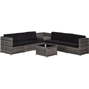 " Make your garden stand out like never before with this beautiful outdoor corner sofa from Outsunny. Using aluminum for the base frame of the garden sofa to create a long-term and stable structure, each of the eight pieces included (two corner seats, four normal seats, a footstool, and table) are wrapped in mixed-grey rattan to ensure strength of the conservatory furniture, with a smooth finish that can be wiped clean easily. Padded seats and back cushions provide comfort. Specifications: • Item Name: Eight-piece Rattan Funiture Set • Brand Name: Outsunny • Material Used: PE rattan, Aluminium frame, Tempered glass • Colour: Brown • 2 x Corner Seat: 78W x 78D x 65Hcm • 4 x Middle seat: 63W x 78D x 65Hcm • Table: 63L x 63W x 32Hcm • Footstool: 63L x 63W x 32Hcm • 4 x Pillows: 40cm x 40cm • Custom Label: 01-0713 Just so you know: this item ships and arrives in separate boxes. Delivery times may vary with each box. Box quantity: 3 Features: • Outdoor dining set, formed of two corner