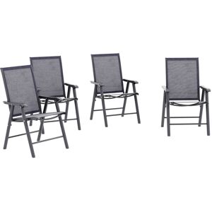 Never be stuck for a seat again, whether you're home or away, with this set of four folding chairs. Using metal with a powder coating for extra strength and durability, the frame is crafted into a classic outdoor chair style for simplicity, with texteline seats that allow your skin to breathe – perfect for the hotter days. With a tall, slightly tilted back, wide seat and mid-rise armrests, each seat will support you whilst keeping you comfortable for long periods of time.Features:Set of four folding chairs – the ideal set for camping trips, picnics and keeping at home for spare seatingPowder-coated metal frame for enduring strength and durabilityTexteline seat allows your skin to breathe in hot and cold weatherHigh, slightly angled back, armrests and wide seat for support and comfortLightweight for ease moving aroundMaximum weight 100kg per seat, no assembly required