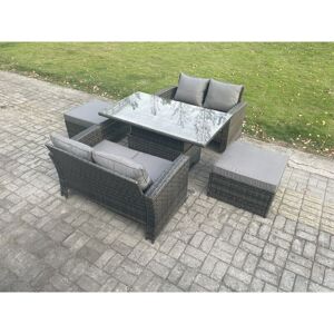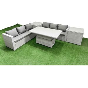 This deluxe rattan rising sofa dining set is a great addition to patio or garden, made of high quality PE rattan and durable galvanized steel construction for sturdiness and long lasting. Durability ,and can be put outdoor all year round. Set Dimensions: 2 x Three Seater Sofa : 177W x 65D x 66H cm 1 x PC Rising dining table: 140L x 80W x 68/48H cm (height up 68, down 48) 2 x Side Coffee Table: 65L x 65W x 66H cm Light grey mixed rattan with dark grey fabric .Color may some difference due to light or monitor .we are unable to return the item due to color problem. Table Can Be Used Both For Coffee Or Dining TableCheap Price Compared With Other On Or Offline Store For Rising Table Set Items Comes Flat Packed And Easy Assemble, Sturdy Galvanized Steel Tube Metal Frames With Powder Coating To Prevent The Rust Flat PE Rattan Completely Made By Handmade, 5mm Thickness Clear Tempered Glass With Sucker On Surface To Prevent Slide8 CM Thick Seat Cushion With Soft Pillow Back Cushion Gives You More Comfort Low Maintence ,Removable Cushion Cover And Easy Move To Different Place. Pls Keep the Cushion Indoor Or With Rain Cover When Not In Use . Keep The Furniture With Rain Cover If Not Use For Long Time . Factory Directly Sold To Guarantee The Quality And After Sale Service Important notice: pls check the product carefully before sign it .if any obviously damaged ,pls kindly marked in the receiption .we will claim to the courier and send the replacement .thank you This item is for kerbeside delivery , we can't deliver to your room . WARRANTY&SUPPORT:Though we have nearly 100% checking before shipment but as this item is 100% by handmade so If you have any issues of assembly, missing parts, damaged or other problems of product quality of this outdoor rattan furniture set, please feel free to contact us, and our after-sales team will respond within 24 hours and offer you the most perfect and powerful solutions. Fimous 5 PCs Rising Dining Table Set Rattan Furniture Set with 3 Seater Sofa in Light Grey
