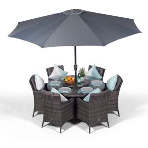 SAVANNAH 4 SEATER ROUND RATTAN GARDEN DINING SET ENJOY SUMMER IN STYLE - Enjoy warm summer days and evenings in style with the Savannah 4 seater round rattan dining set by Giardino. Built to last years, the Giardino brand of synthetic outdoor wicker furniture is UV and weather resistant, lightweight; incredibly durable and looks amazing. This 4 seater rattan dining table and chairs set is available in a stunning mixed brown weave or the ultra stylish mixed grey weave. EVERYTHING YOU NEED FOR ENTERTAINING - The versatile Savannah rattan dining set provides everything you need to enjoy alfresco family meals during long warm summer days, whilst making your outdoor living space ultra stylish! The Savannah outdoor rattan dining set consists of a 120cm round rattan dining table, 4 padded rattan dining chairs, 2.5m parasol and 12kg parasol base. QUALITY CRAFTSMANSHIP - The Savannah rattan garden furniture set is made using aluminium frames and polyethylene all weather rattan, making this