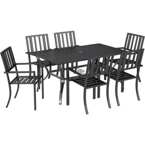 Check out this Outsunny outdoor dining set to complete your space. The set includes four foldable chairs, a round glass-top table and parasol umbrella - you've got everything you need to dine with family/friends and keep protected. The metal frames of each piece are strong and rust-resistant, with the breathable mesh chairs making them perfect for hotter climes. An excellent addition to your patio all year round. OUTSUNNY 6 Pieces Patio Dining Set with Umbrella 4 Folding Chairs & Glass Table in Black