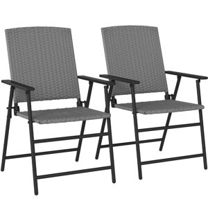 These two Outsunny outdoor chairs combine design and function. The frame made from steel, both are wrapped in PE rattan for extra style and durability. They are also weather-resistant. The foldable design makes it easy to store both chairs when needed, storage when not in use. Both chairs are also easy to clean and maintain, meaning minimal effort for you and more time to enjoy outdoors. Specifications: ● Colour: Grey ● Material: Steel, PE Rattan ● Chair Dimension: 58W x 61D x 94H cm ● Seat Size: 45W x 39D cm ● Seat Height: 44cm ● Backrest Size: 56L x 45W cm ● Armrest Size: 4.5W x 63.5H cm ● Foldable Dimension: 86.5L x 57.5W x 8.5T cm ● Weight Capacity: 110 kg ● Item Label: 867-070V00GY Features: ● Two chair set for an easy matching look outdoors ● Foldable design to store when not in use ● PE rattan used is water and UV resistant for years of outdoor use ● Steel frame for a solid and strong core ● Foot pads protect your floor from scratches ● Suitable for patios, balconies and