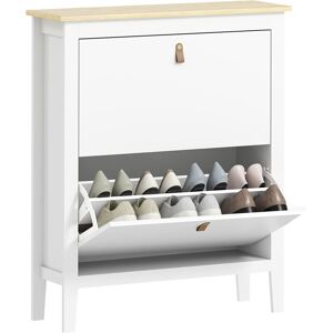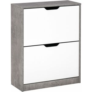 " Too many shoes and worried about no place to store your favourite footwear?It's time to organise your shoes, boots, and high-heels now with our HOMCOM shoe cabinet. The stylish and modern look will fit any decor of your room. Constructed of particleboard, this tipping shoe organisation is sturdy for reliable use and does no harm to the human body. Adjustable board in each tier allows efficient space use. Keep your shoes and accessories neatly tucked away within this slim shoe cabinet. Specifications: • Colour: Black • Material: Particle board, Metal • Overall Dimension: 60L x 24D x 80H cm • Each Door Size: 56W x 34.5H cm • Net Weight:14.8kg • Weight Capacity:30kg • Custom Label: 833-170BK Features: • Elegant and stylish design match any home décor • Great for the entryway, hallway, mudroom, utility room, etc • Constructed of sturdy particle board for years to use •Features 2 drawers with exquisite handle, each with two shelves in for neat storage • Tilt-out drawers help save space •