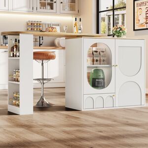 This rotatable bar table measures 135-203L x 39W x 93H cm and extends from 135 to 203 cm to fit compact kitchens or larger entertaining spaces. A clever three-tier storage unit with double doors, glass panels and built-in LED lighting keeps glassware and everyday items organised and to hand. The extendable side table rotates a full 360° and includes a spice rack reinforced with steel tubes for secure bottle storage, while metal handles with a retro finish add rust resistance and a stylish touch and the unit supports up to 60 kg. Made from MDF, particleboard and metal with a wood-grain tabletop and sleek black cabinet, this coffee bar and kitchen island combines sturdy construction with on-trend looks ideal for open-plan living.